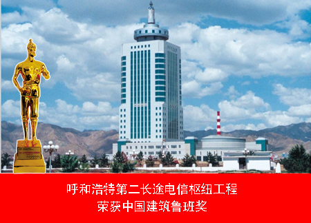 呼和浩特第二長(zhǎng)途電信樞紐工程,是國(guó)家重點(diǎn)通訊基礎(chǔ)設(shè)備建設(shè)項(xiàng)目,內(nèi)蒙古自治區(qū)成立50周年的獻(xiàn)禮項(xiàng)目,獲得中國(guó)建筑工程“魯班獎(jiǎng)”。