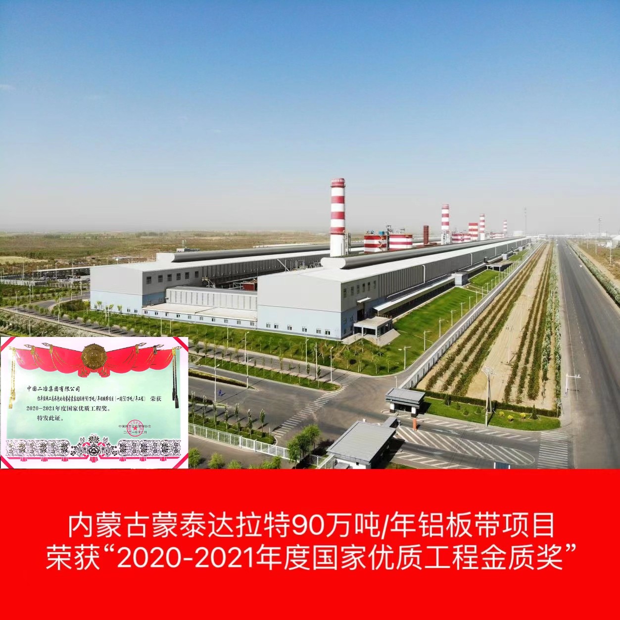內(nèi)蒙古蒙泰達(dá)拉特90萬噸/年鋁板帶項(xiàng)目(一期50萬噸電解鋁工程)屬于內(nèi)蒙古積極響應(yīng)國家循環(huán)經(jīng)濟(jì)資源綜合利用示范項(xiàng)目,項(xiàng)目采用500KA預(yù)焙陽極鋁電解槽及配套的煙氣干法凈化技術(shù)及與之配套的供電整流、鑄造、電解煙氣凈化等工程。獲得“2020-2021年度國家優(yōu)質(zhì)工程金質(zhì)獎(jiǎng)”。